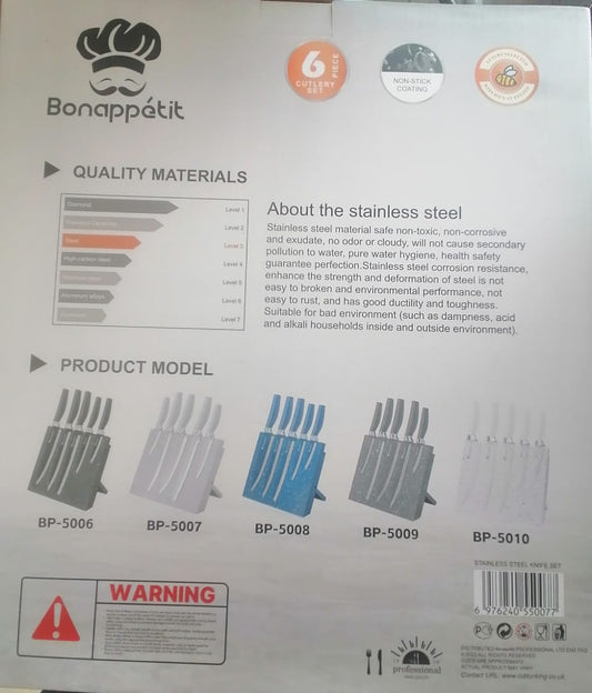 Bonappétit 6-Piece Kitchen Knife Set with Magnetic Block | BP-5008 Blue