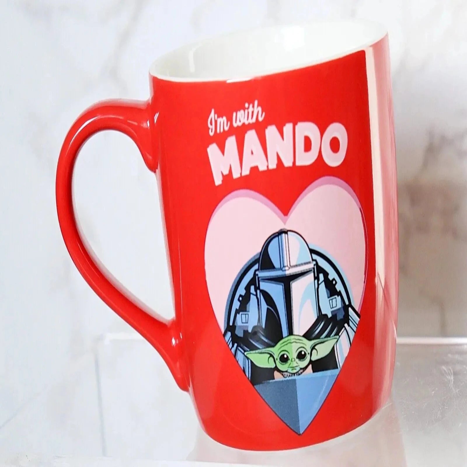 This Disney Star Wars The Mandolorian I'm With Mando Mug Red is perfect for any Star Wars fan! Featuring the popular character from the hit series, this mug is a must-have for any collector. The contemporary design is sure to impress with its bold red color and striking print.
