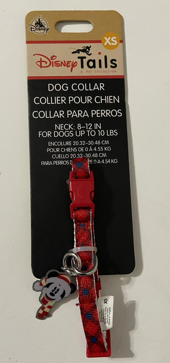 Disney Tails CHRISTMAS Red Plaid DOG COLLAR with SANTA MICKEY Charm Size M NWT