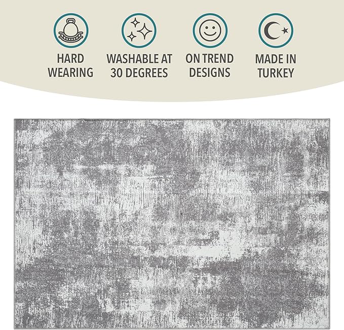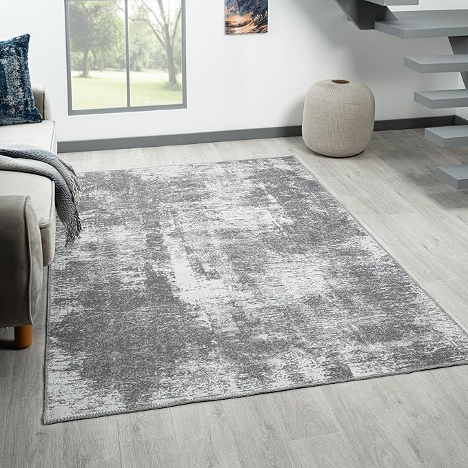 Rugs and More, Abstract Washable Grey Area Rug - Short Pile Rugs, Easy to Clean, Child & Pet Friendly - Modern Carpet for Living Room, Bedroom, Kitchen